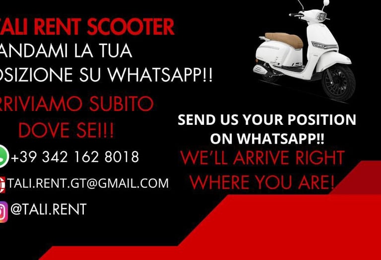 Tali è super gentile, i scooter erano come nuovi e tutto è stato molto semplice e senza intoppi, lo consiglio assolutamente!"